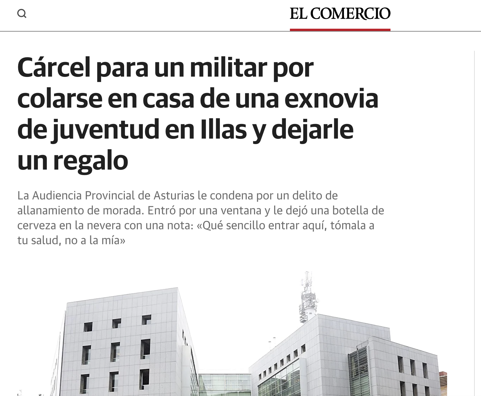 ➟ Una propuesta no machista: Cárcel para un militar por allanar la vivienda de su exnovia en Illas y dejarle un mensaje intimidatorio