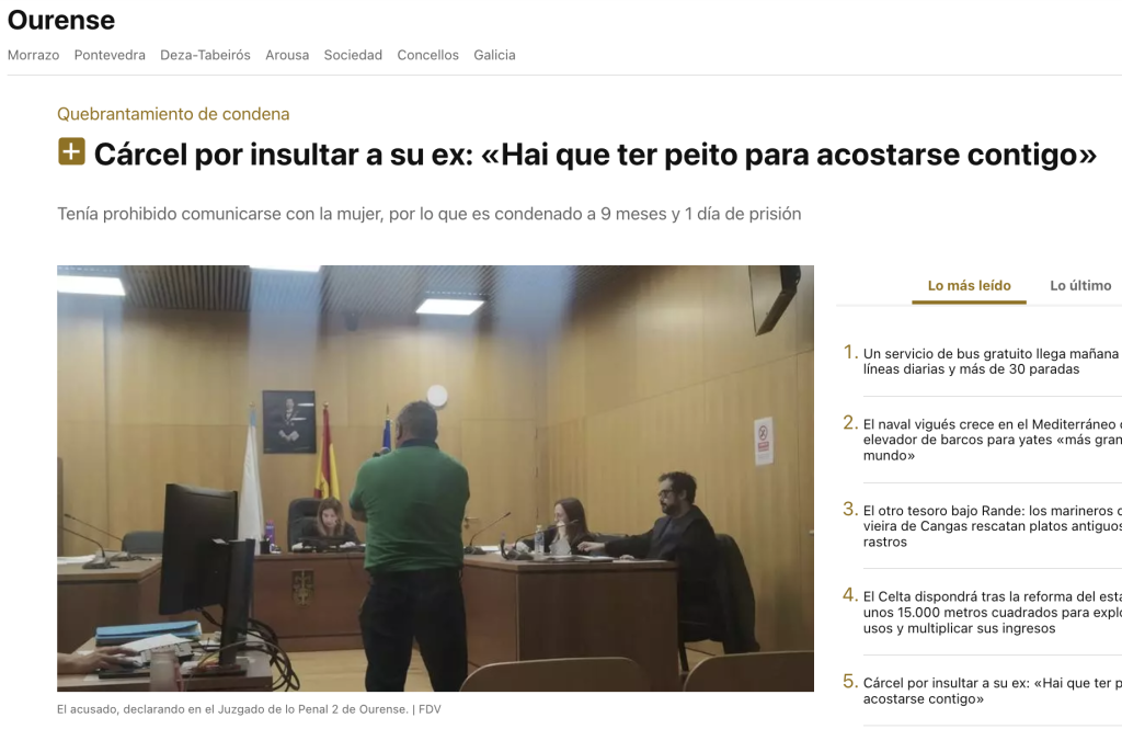 Cárcel por insultar a su ex: «Hai que ter peito para acostarse contigo»