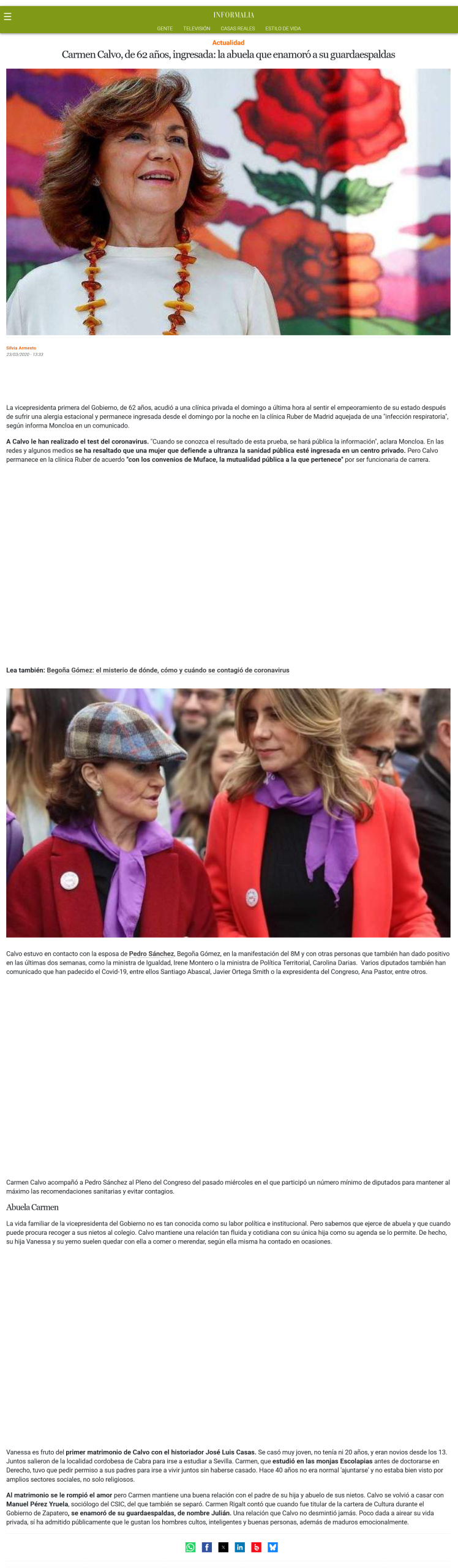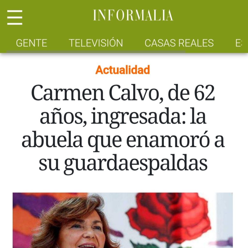 Carmen calvo, de 62 años, ingresada: la abuela que enamoró a su guardaespaldas