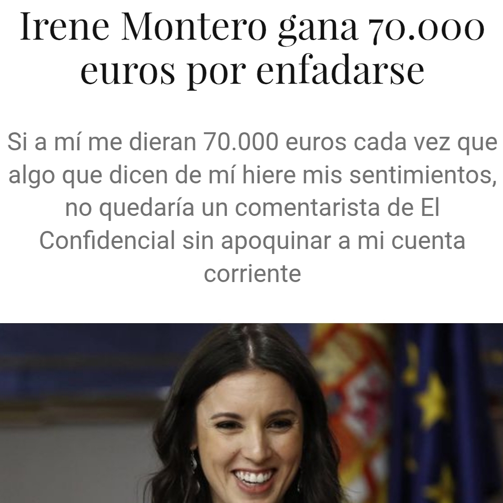 ➟ Una propuesta no machista: «Irene Montero gana una demanda por vulneración de su honor y recibe 70.000 euros»