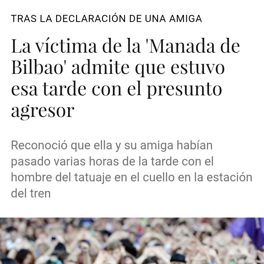 ➟ Una propuesta no machista: « La víctima de la ‘Manada de Bilbao’ declara que coincidió con el acusado antes de la agresión»
